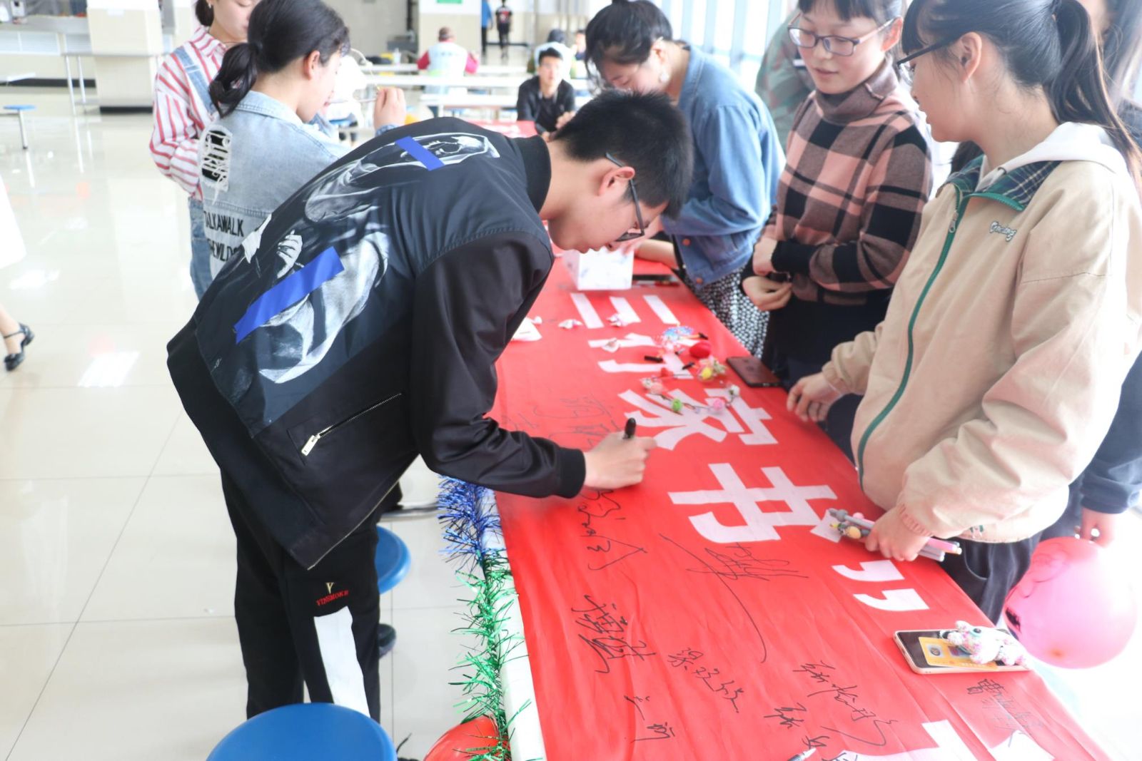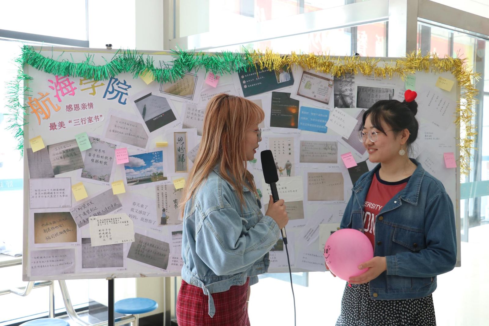 活动现场,同学们热情有序的参与到条幅签字、明信片留言、拨打亲情电话和接受采访等活动环节,向远方的父母送上问候和祝福,以实际行动感恩父母、回报亲情。活动现场还展览了一批“三行家书”优秀比赛作品,“家书”句句真情,字字动人。十佳歌手献唱母亲节主题歌曲,将现场气氛带入高潮。