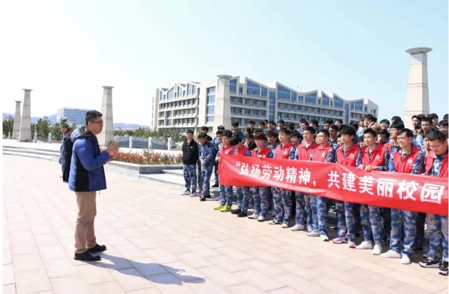 师生联合赶潮人志愿者协会(新时代文明志愿服务队)开展“弘扬劳动精神,共建美丽校园”劳动教育实践活动。