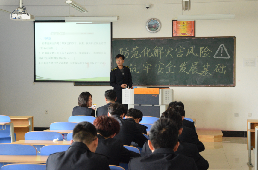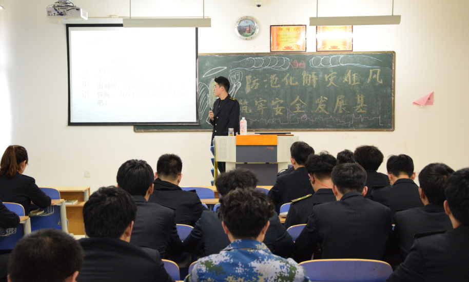 涉海专业,着重强调了海上灾害突发性较高等一系列问题。随后,各班负责人向同学们讲解每一种灾害是如何以一些切实可行的措施处理的,使同学们进一步悉知了灾害的易发性,强化了同学们的应对灾害的心理素质。
