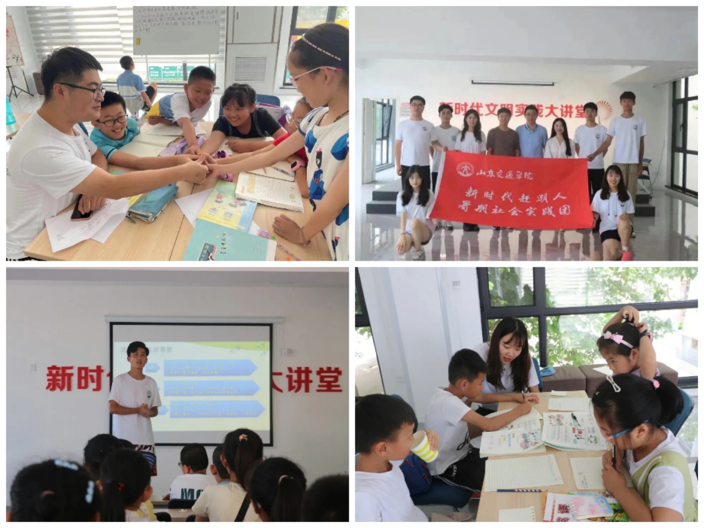 新时代文明实践志愿服务队利用暑假积极组建“筑梦蔚蓝”乡村振兴实践团、“新时代赶潮人”精准帮扶支教团、“眺望深蓝”行业发展调研团三支小分队,分别赴栖霞市庄园街道杜家庄村、威海市环翠区张村镇魏桥社区、青岛市崂山区开展系列新时代文明实践活动。