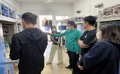 本次宿舍参观学习活动重点排查宿舍存放易燃、危险物品、使用大功率电器、私自接拉电线、存放管制刀具等情况,着重了解同学们疫情封寝期间学习、生活情况。