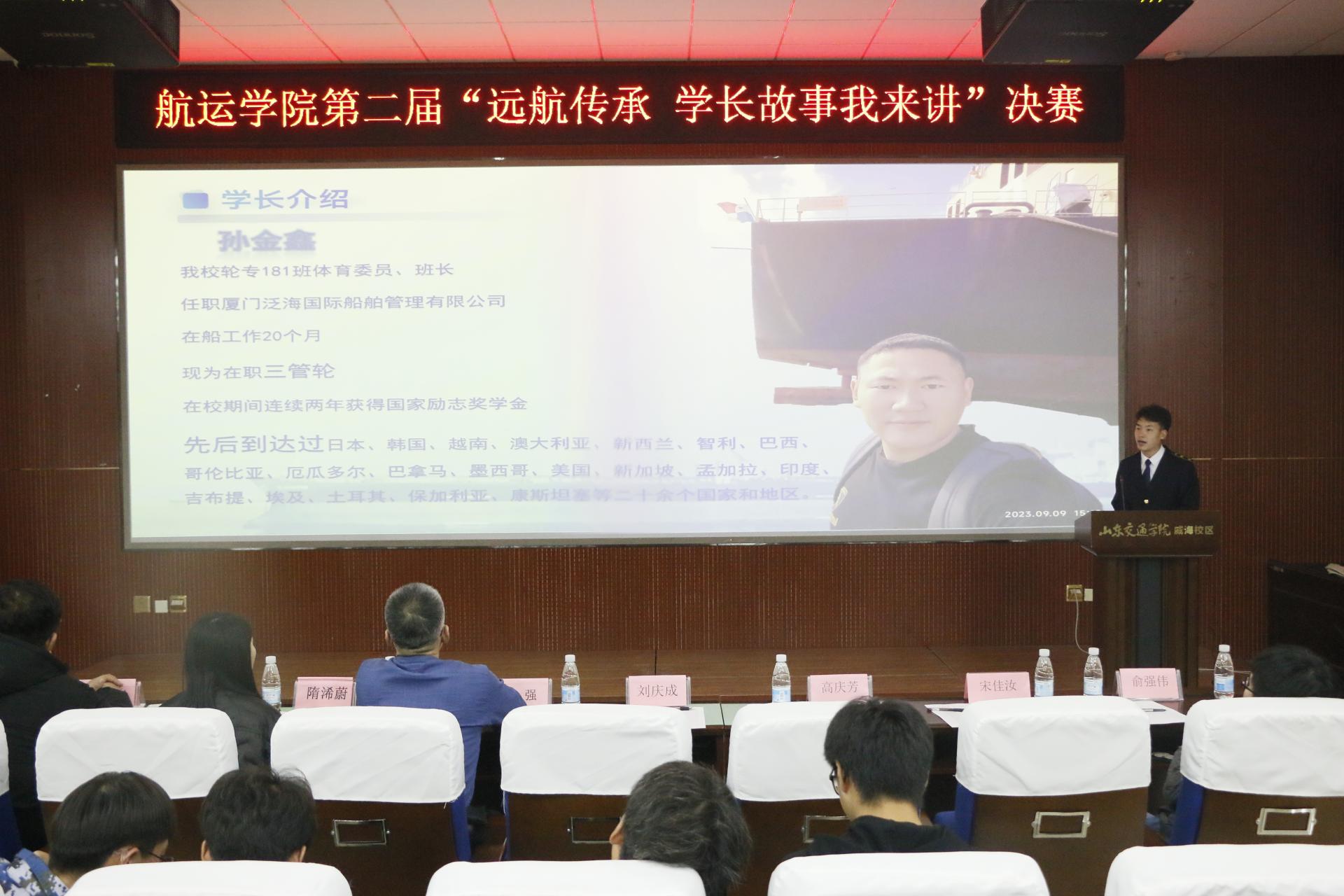 该团队从学长在选择船员职业时,如何取得父母的支持;在上船工作后,如何克服面对风浪的恐惧;适应船上生活后,对美景美食的享受,讲述了2019级航海技术专业孙兴傲学长的故事。学长说:“作为本专业的毕业生,从事这份工作能够使理论得到实践,正所谓纸上得来终觉浅,绝知此事要躬行”,他认为航海事业是一份真男人的事业,作为航海类专业毕业生,只要志在航行,无需为就业问题担忧,还能领略世界美景。
