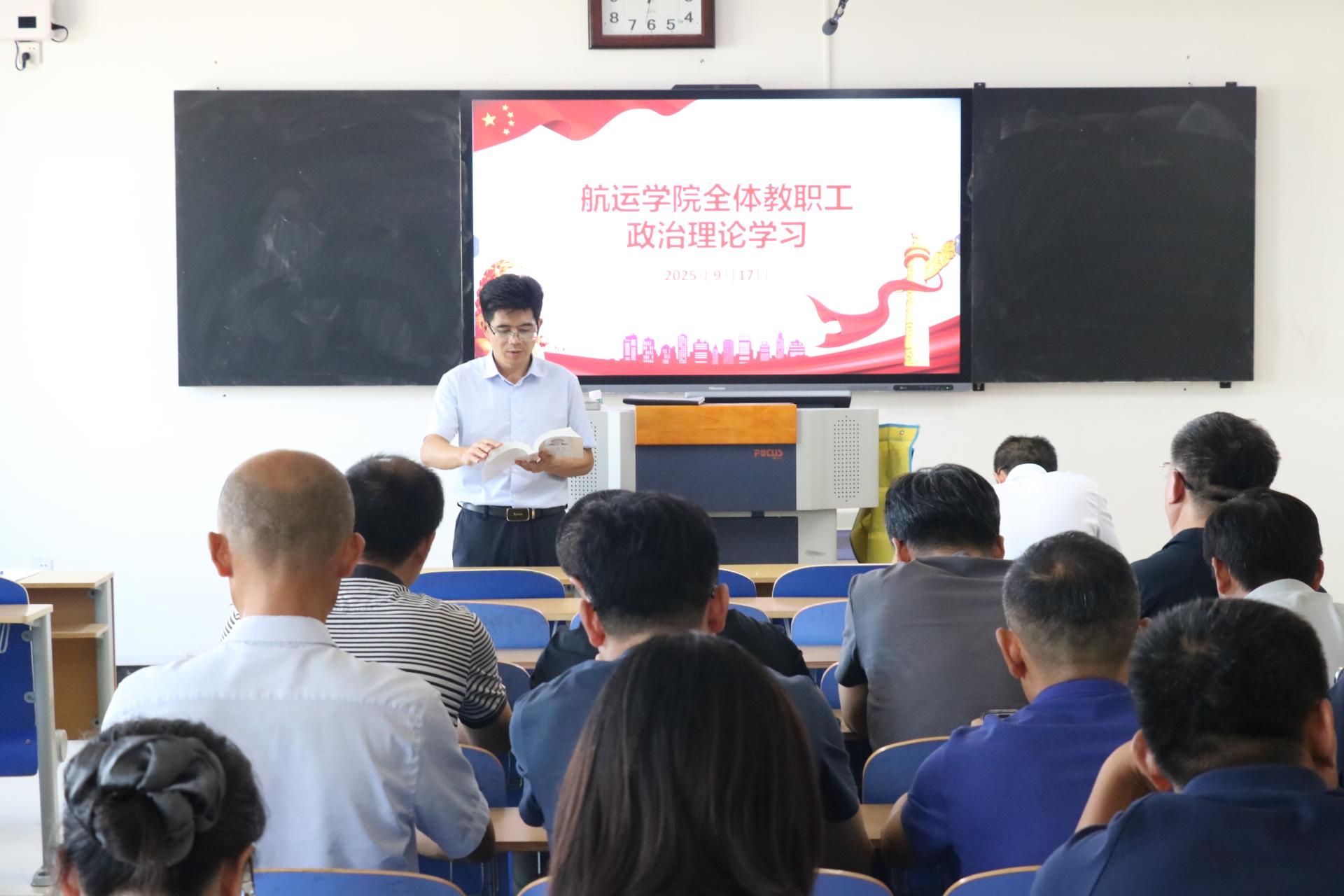 在威海校区2号教学楼A308室组织全体教职工进行政治理论学习,专题学习了《习近平谈治国理政》第五卷部分章节、《高等学校教师职业道德规范》《新时代高校教师职业行为十项准则》。会议由燕雨直播