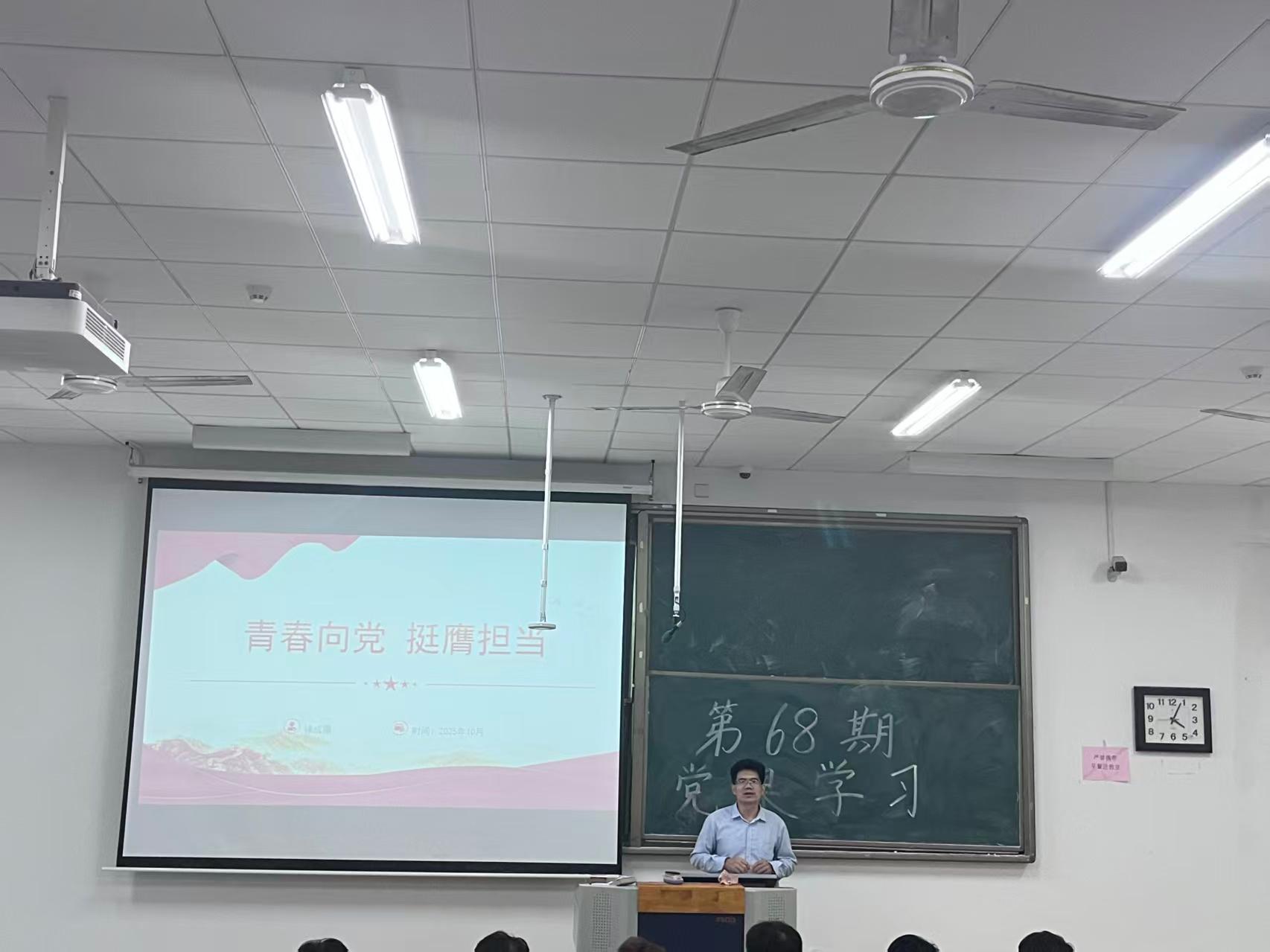 党委书记徐成强在威海校区2号教学楼B105教室为学生预备党员、入党积极分子讲授党课,进一步激发同学们的爱国情怀和奋斗精神。