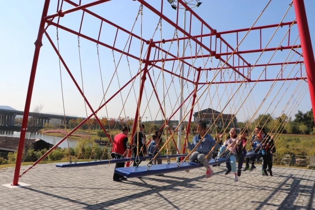 山峦层层,绿草茵茵,小溪潺潺,自然的生态环境吸引了每个到达现场的家庭,大家迅速地融入到大自然当中,有的家长陪孩子在草地上嬉戏;有的家长带着孩子在网红大秋千上玩耍,有的家长陪着孩子大声喊泉,欢乐声此起彼伏。游玩中,孩子们学会了热爱自然,结交朋友,也使老师们在繁忙的工作之余享受陪伴家人的温馨。