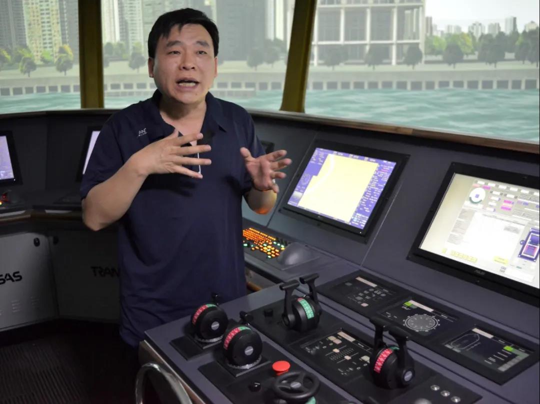 活动最后,志愿者们在周船长的指导下亲自体验船舶驾驶模拟器,他鼓励志愿者们学习航海文化知识,树立海洋强国的远大志向,引导志愿者们勇于担负时代使命,为海洋强国事业贡献自己的青春。