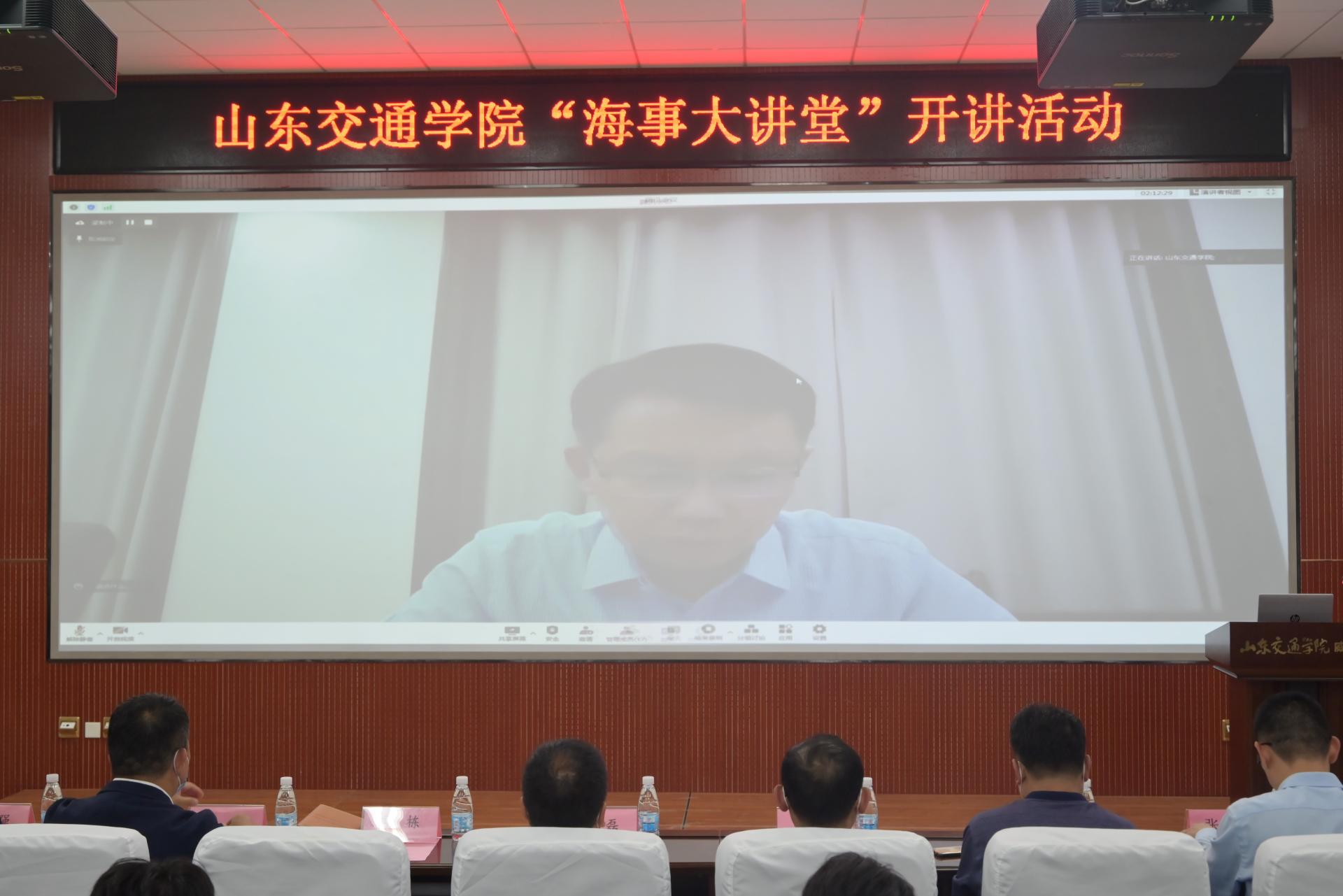 在威海校区第二报告厅举办“海事大讲堂”开讲活动。活动邀请中国航海学会常务副理事长张宝晨担任主讲嘉宾。学校党委委员、副院长姜华平通过线上方式出席活动;威海海事局党委委员、副局长尹磊,华光船务管理有限公司总经理张晓曦,东弘国际海事服务集团董事长姜明旸出席活动。活动由威海校区机关党委书记闫栋主持。