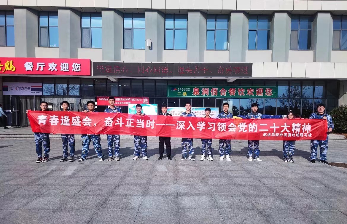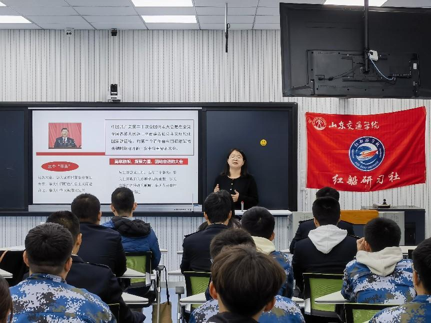 “青春逢盛会,奋斗正当时”主题思政课堂。社团指导老师紧紧围绕着党的二十大的胜利召开展开讲述,鼓励航运青年树立正确的世界观、人生观和价值观,与新时代共同前进,绽放无悔青春。