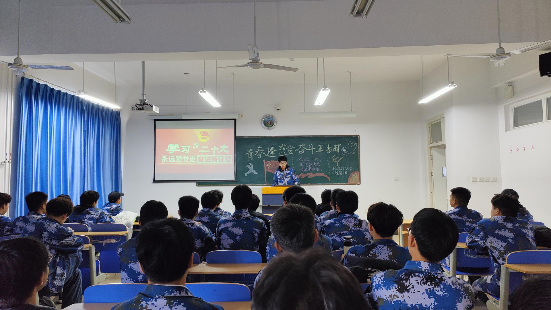 “青春逢盛会,奋斗正当时”主题团日活动。红船研习社宣讲团组织各班级团干部利用班级政治学习时间进行宣讲,积极带领各团支部深入学习领会党的二十大精神,形成“党团班一体化建设”模式,不断激发青年学子学习热情。