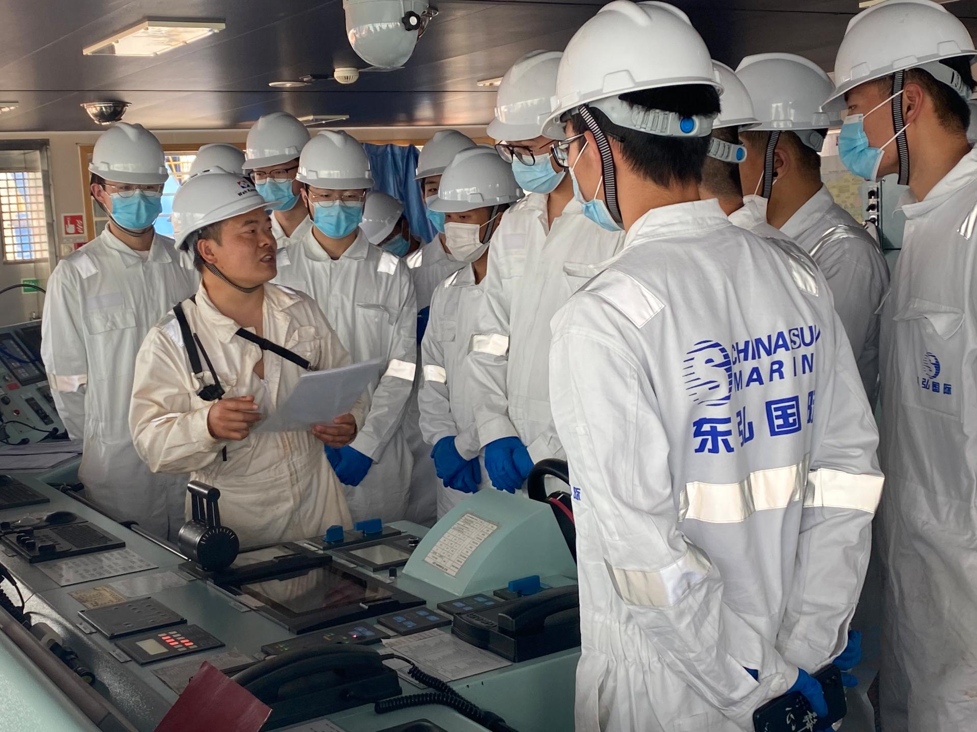 此次访船对象为“中船杭州”号。二副李赟杰介绍了轮船主要构造和各部门职责,详细讲解了驾驶台各类仪器名称、功能及海上应急处理方案,并解答了学生提出的疑问。山东东弘国际船员管理有限公司轮机长陈志峰带领学生参观了轮船办公区、船员生活区及机舱控制区,详细介绍了船舶主要动力设备、协同调控原理及火灾防控系统,强调安全意识和责任意识,鼓励学生积极参与上船实践,将理论知识与实践相结合,为我国航运事业发展贡献青春力量。