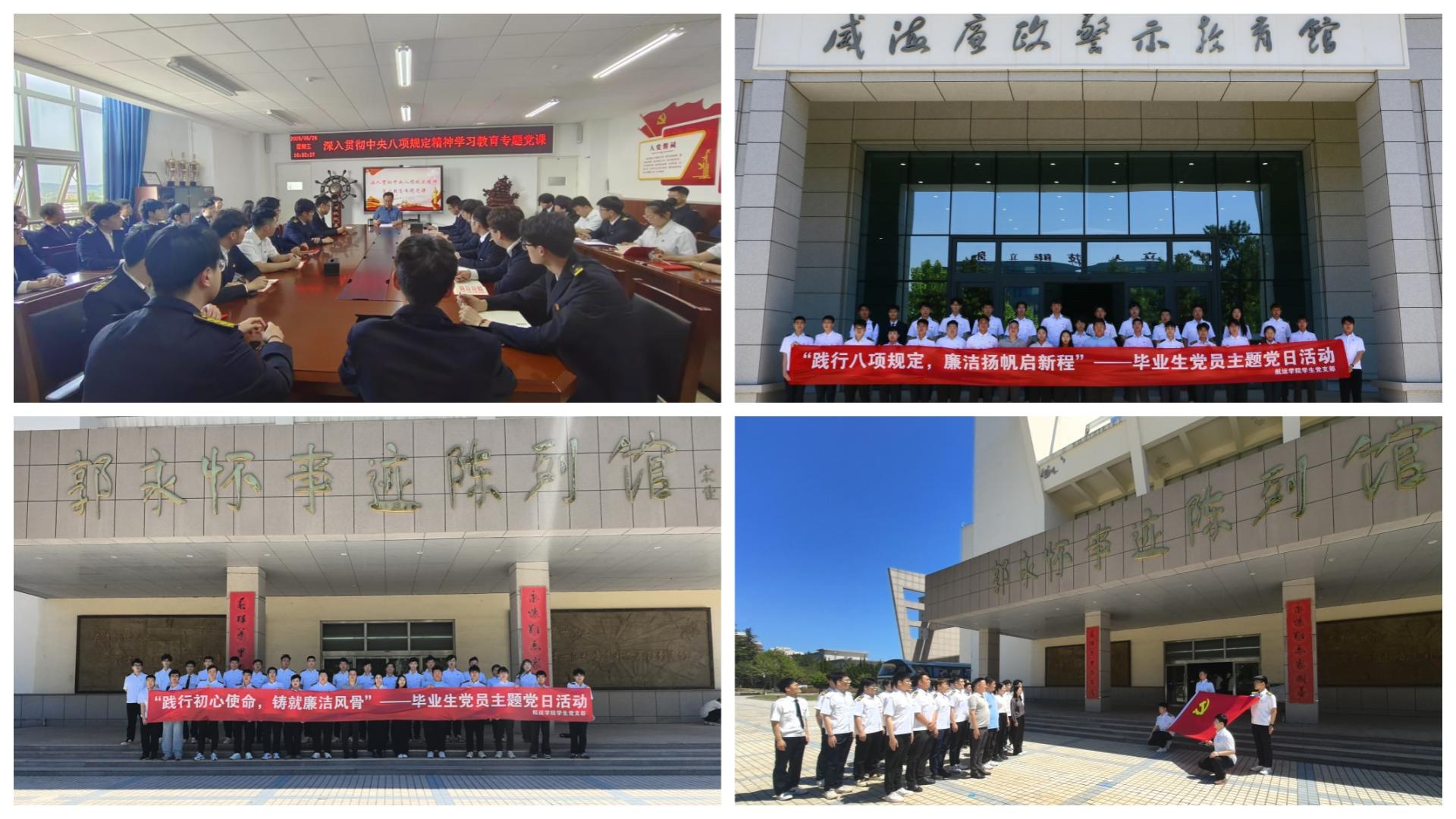 党委书记陈海泳为全体毕业生党员讲授纪律党课,引导毕业生党员从思想上正本清源,从行动上对标看齐,进一步筑牢拒腐防变的思想根基。开展警示教育,全体毕业生党员赴威海廉政警示教育馆,深入学习违规违纪典型案例,深刻领会中央八项规定精神的价值内涵和时代意义。开展党性教育,全体毕业生党员赴郭永怀纪念馆参观学习,通过参观历史文物、文字资料,深入学习郭永怀同志对国家“两弹一星”国防事业的贡献和追求,深刻体会郭永怀同志舍身忘我、无私奉献的家国情怀。