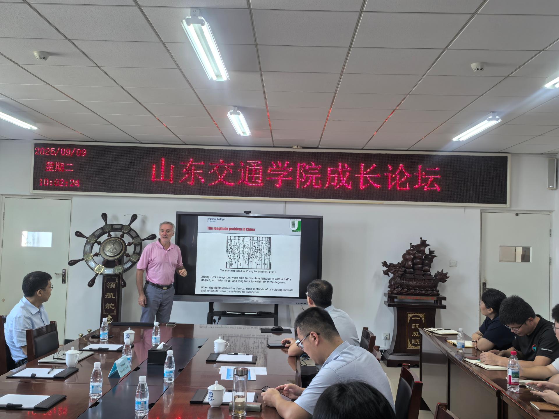 开展学术交流,并作题为《Longitude》的前沿学术报告。报告会在威海校区燕雨直播